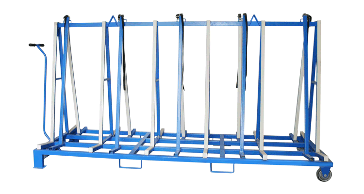 此設(shè)計(jì)用于廠區(qū)內(nèi)外的板材運(yùn)輸和儲(chǔ)存,支架表面覆蓋一層橡膠層,保護(hù)板材免于刮傷。