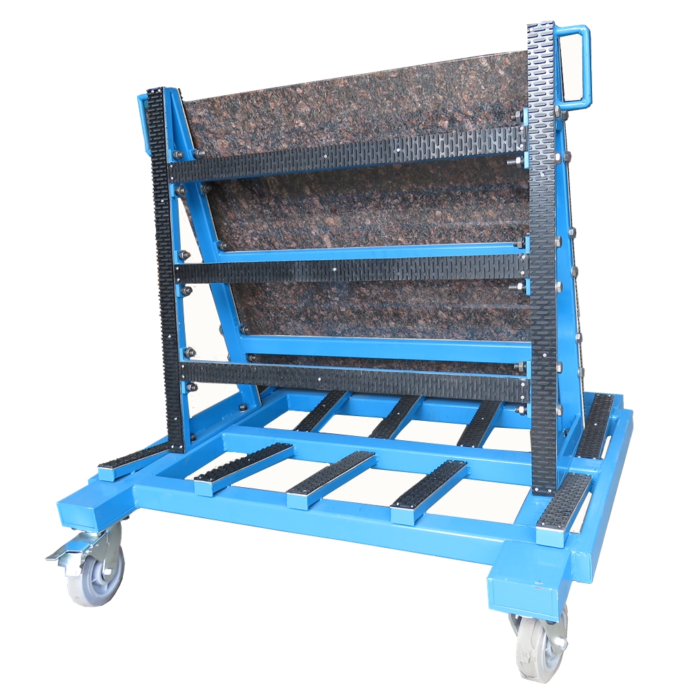此設計用于廠區內外的板材運輸和儲存,支架表面覆蓋一層橡膠層,保護板材免于刮傷。